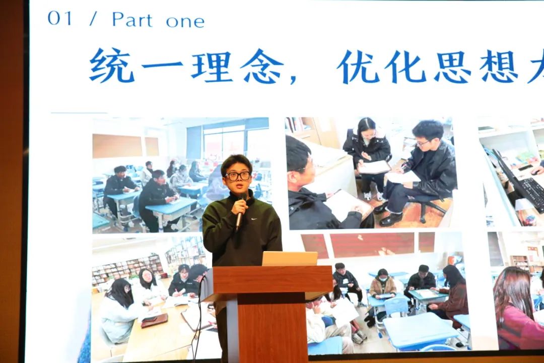 水尝无华,相荡乃成涟漪;石本无火,相击而发灵光。本次会议安排了四位老师代表分享他们关于教育教学质量提升的实践与思考。秦呈莹老师围绕课前、课堂、课后三方面分享高效课堂的经验;曹力维老师以“龙翔万里 乘风而上”为主题分享新教师教学心得;李忻琰老师以“守”“真”“爱”为出发点分享班级故事;王正奇老师作了“志合越山海 聚力共前行”为主题的年级组经验分享。